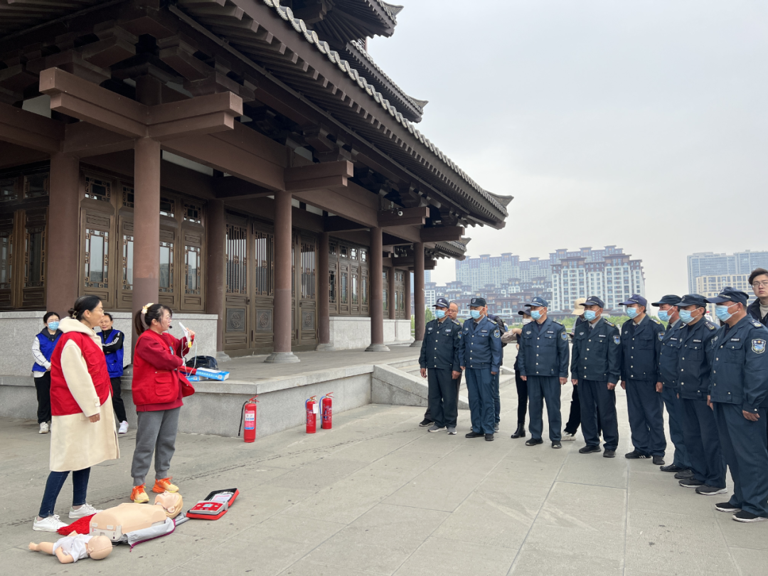 為保障齊盛湖公園五一節(jié)假日安全,提升安保隊員應(yīng)急處突能力,保障游客生命財產(chǎn)安全,4月25日,市保安公司在齊盛湖公園海岱樓廣場開展消防、應(yīng)急救援心肺復(fù)蘇等培訓(xùn)演練活動。