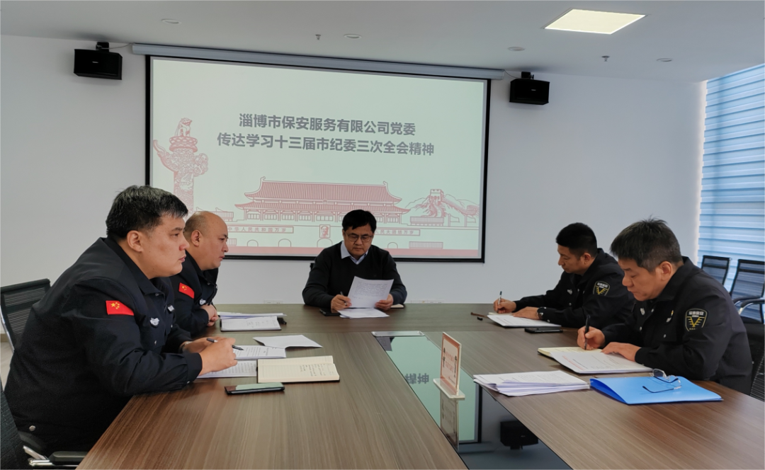 近期,市保安公司召開黨委會(huì)議,傳達(dá)學(xué)習(xí)十三屆市紀(jì)委三次全會(huì)精神。公司黨委書記、董事長(zhǎng)付志欣同志主持會(huì)議并講話,班子成員參加會(huì)議。