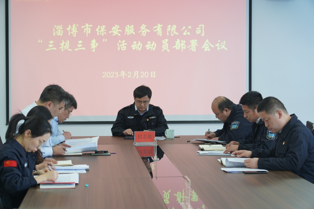 2月20日下午,淄博市保安服務(wù)有限公司召開黨委會(huì)議,學(xué)習(xí)全市“三提三爭(zhēng)”活動(dòng)動(dòng)員大會(huì)精神,傳達(dá)《市國(guó)資委黨委關(guān)于開展“三提三爭(zhēng)”活動(dòng)的通知》要求,并對(duì)下一步工作進(jìn)行研究部署。公司黨委班子全體成員參加會(huì)議,黨委書記、董事長(zhǎng)付志欣主持會(huì)議。